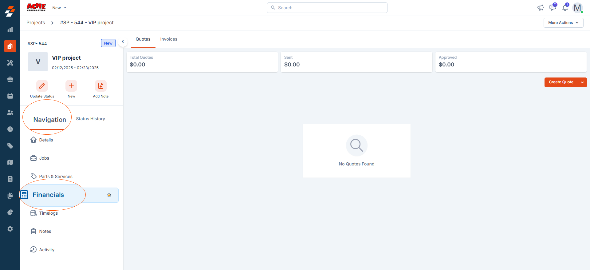Financials” on the project details page, as shown below: