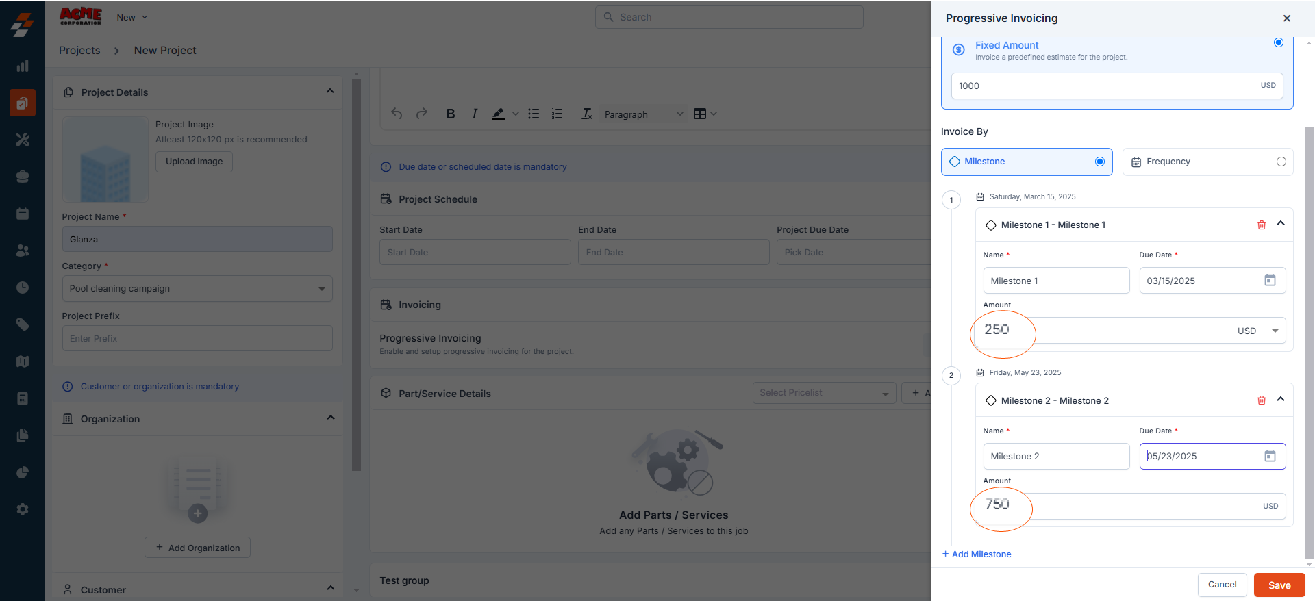 With Zuper, setting up progressive invoicing is seamless and flexible, offering options to suit your business needs: