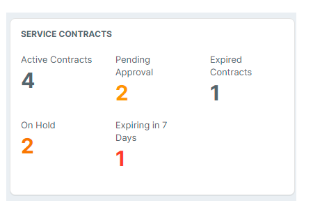 Service contracts in the Zuper dashboard show the following information according to the job split up.